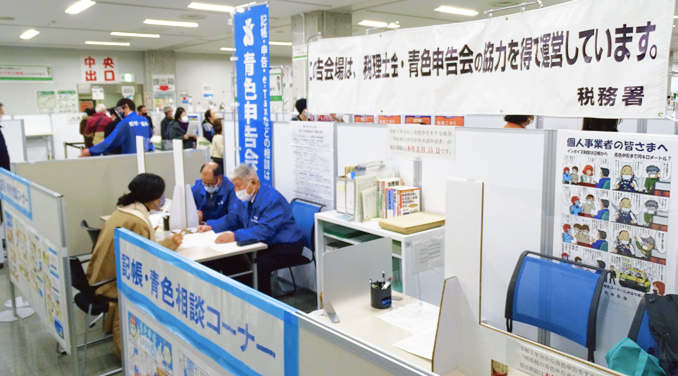 所得税の確定申告期間には、確定申告会場に設置している「青色コーナー」において、青色申告の普及に取り組んでいます。
