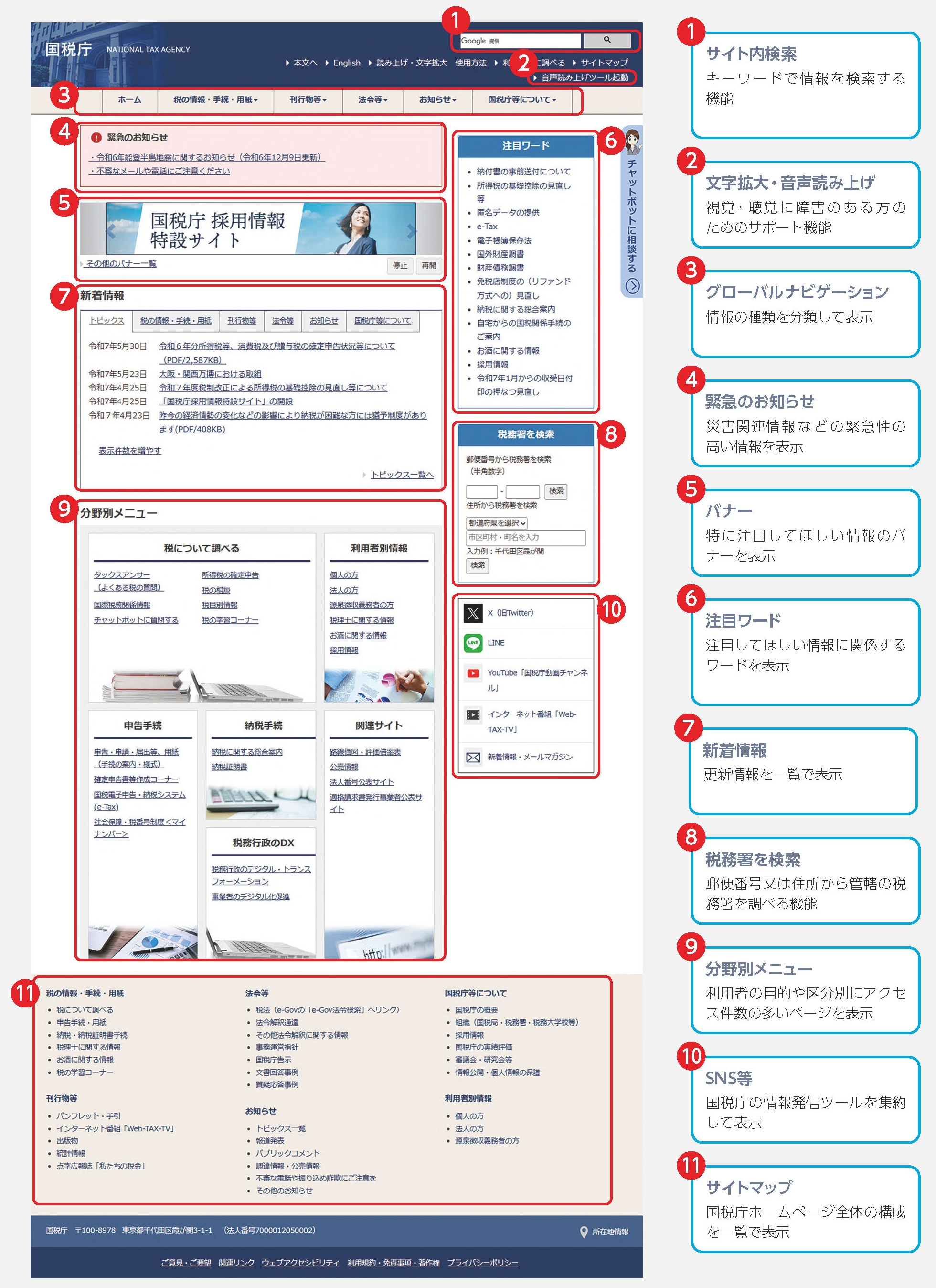 また、障害の有無、年齢、利用環境等にかかわらず、誰もが国税庁ホームページで提供される情報や機能を支障なく利用できるように配慮したコンテンツを提供するように努めています。
