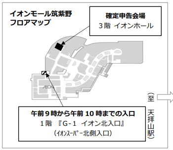 ・ 確定申告会場は、3階イオンホールです。