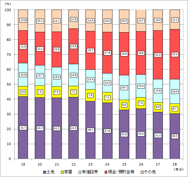 (注) カッコ書は、相続財産に占める各項目の構成比を示す。