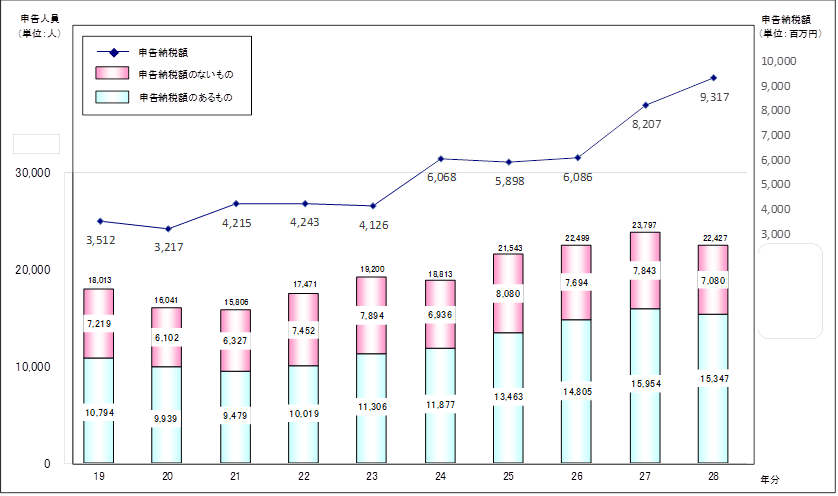 =申告人員、納税人員はいずれも前年分から減少、申告納税額は増加=