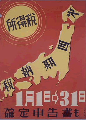 戦後、昭和22年(1947)の税制改正では、分類所得税と綜合所得税の二本立てを廃止し超過累進税率の一本立てとし、所得税及び法人税に申告納税制度が導入されました。また、所得税は利子所得、配当所得、給与所得、退職所得、山林所得、譲渡所得、事業等所得に課税されることになりました。