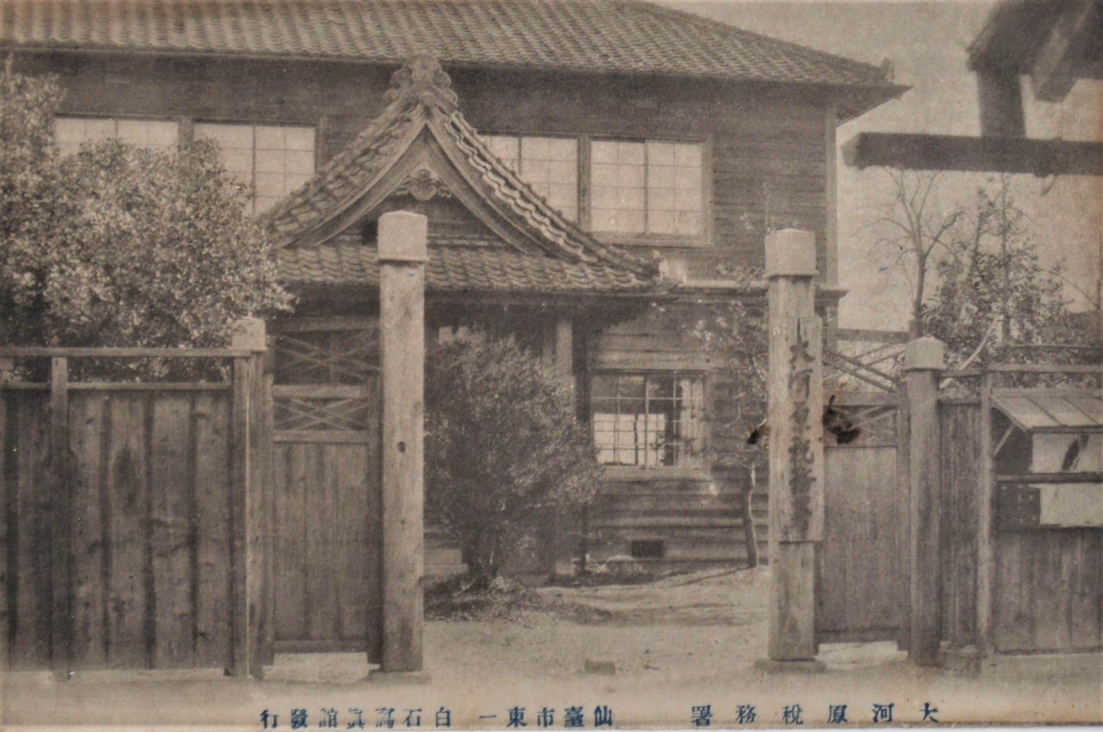 表面の様式から、明治40(1907)年から大正7(1918)年の作成と推定されます。同署は、戦前には明治35(1902)年、大正2(1913)年、同6(1917)年と、3度移転しています。ただ、この絵はがきは大正3(1914)年4月に使用されています。そのため、大正2年の庁舎と推定されますが、確実ではありません。