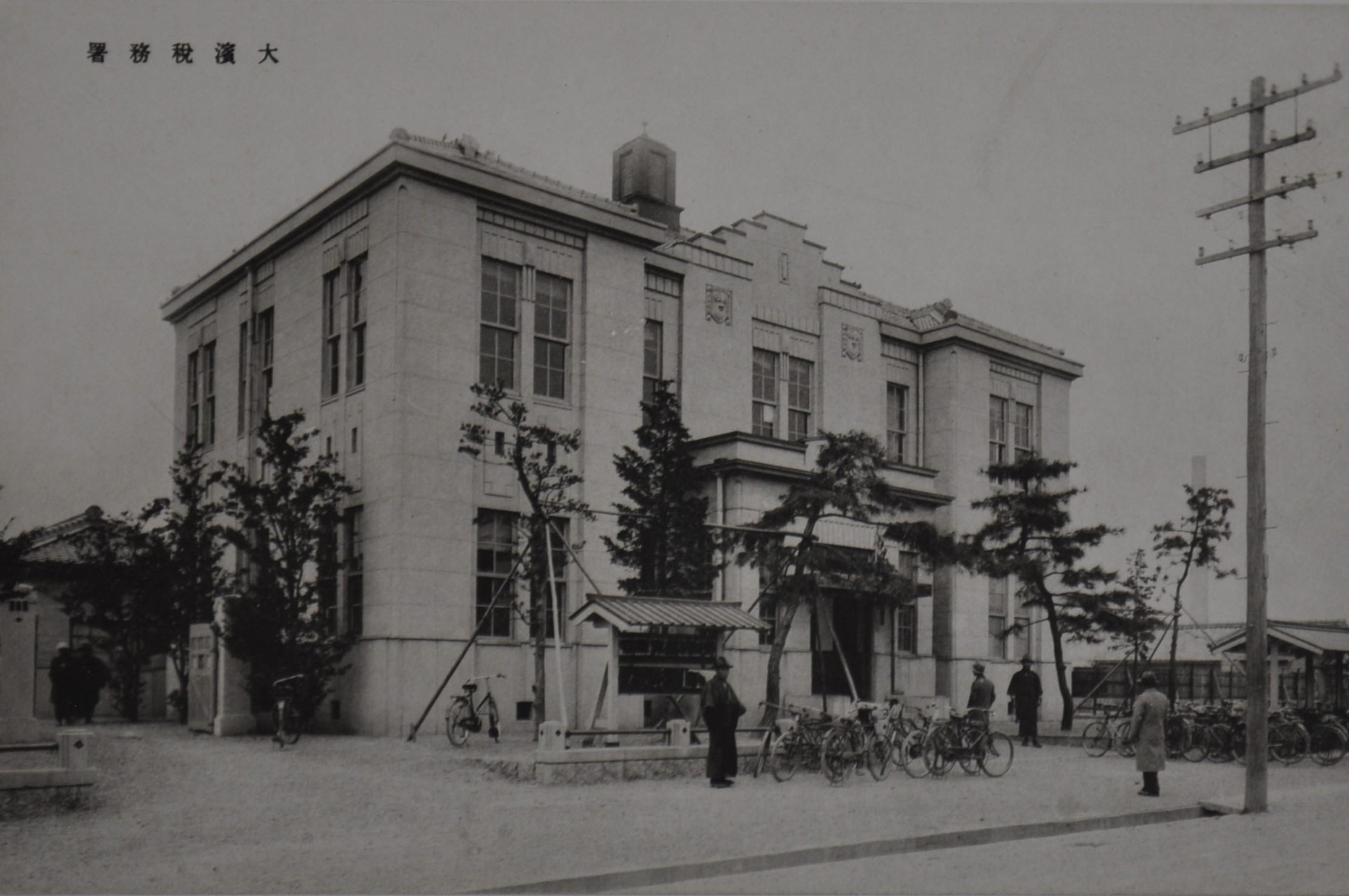 大浜署は大正13(1924)年11月に新設され、大正15(1926)年1月に新庁舎に移転しました。1の絵はがきは、同署の竣功移庁式のために作成された記念絵はがきです。スタンプの有無については、展示をご覧下さい。 これ以外にも、大浜署の名所絵はがきが複数確認されています。2は、そのうちの1枚です。