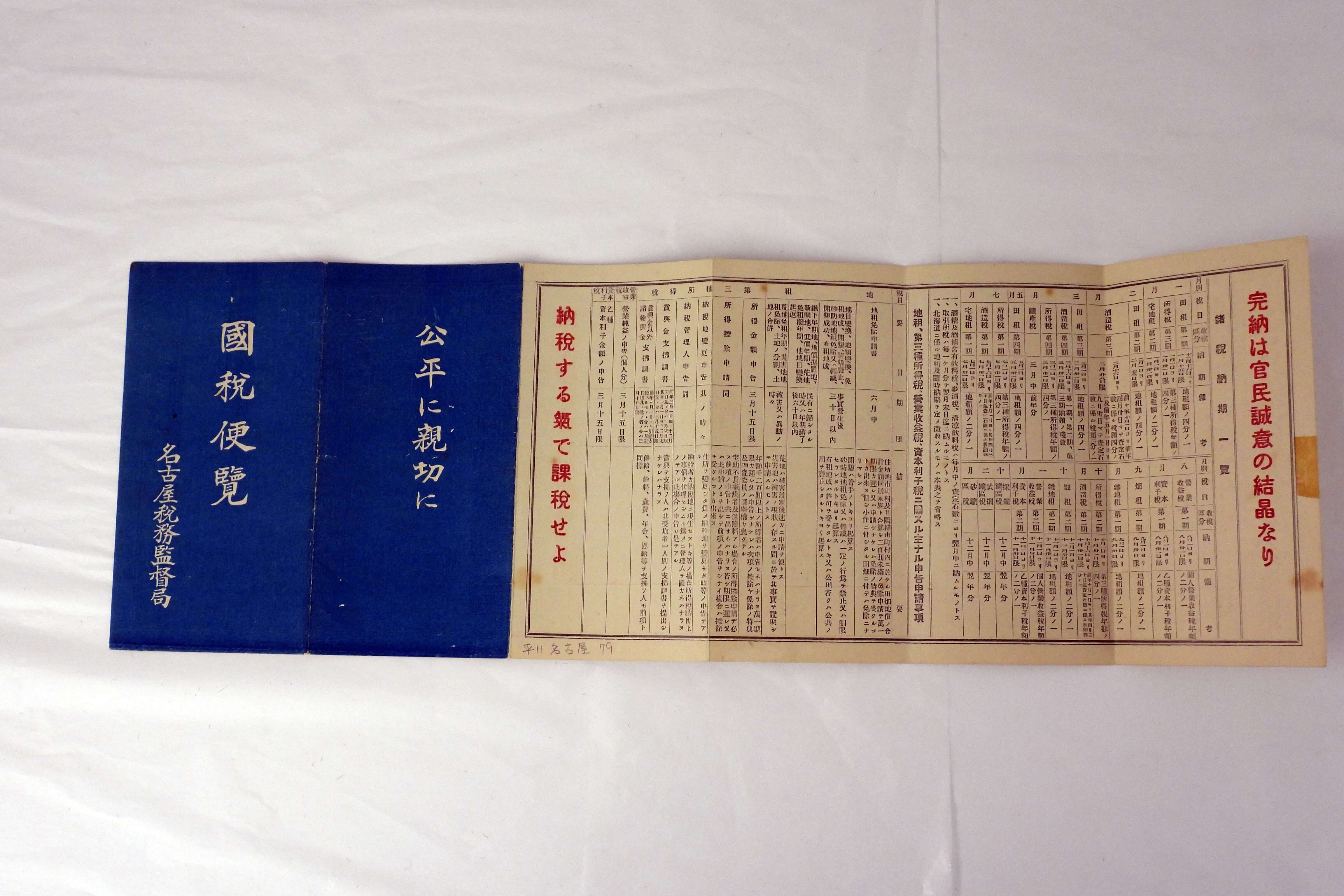 名古屋税務監督局管内の税務職員が携行していた国税の税率や納税期日を記したハンドブックです。