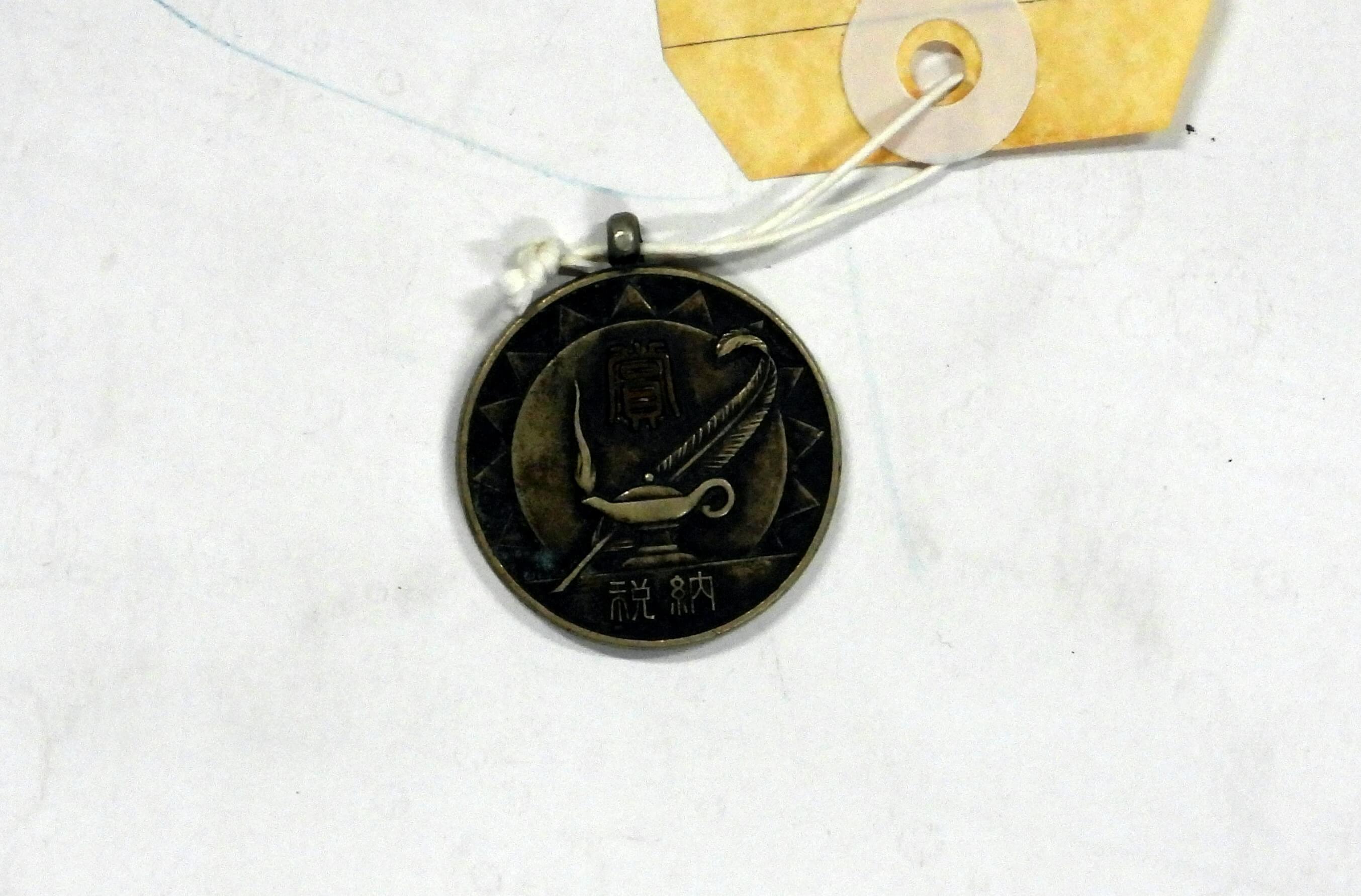 右のメダルは、納税週間中に行われた作文募集の入選者に贈られた記念品です。