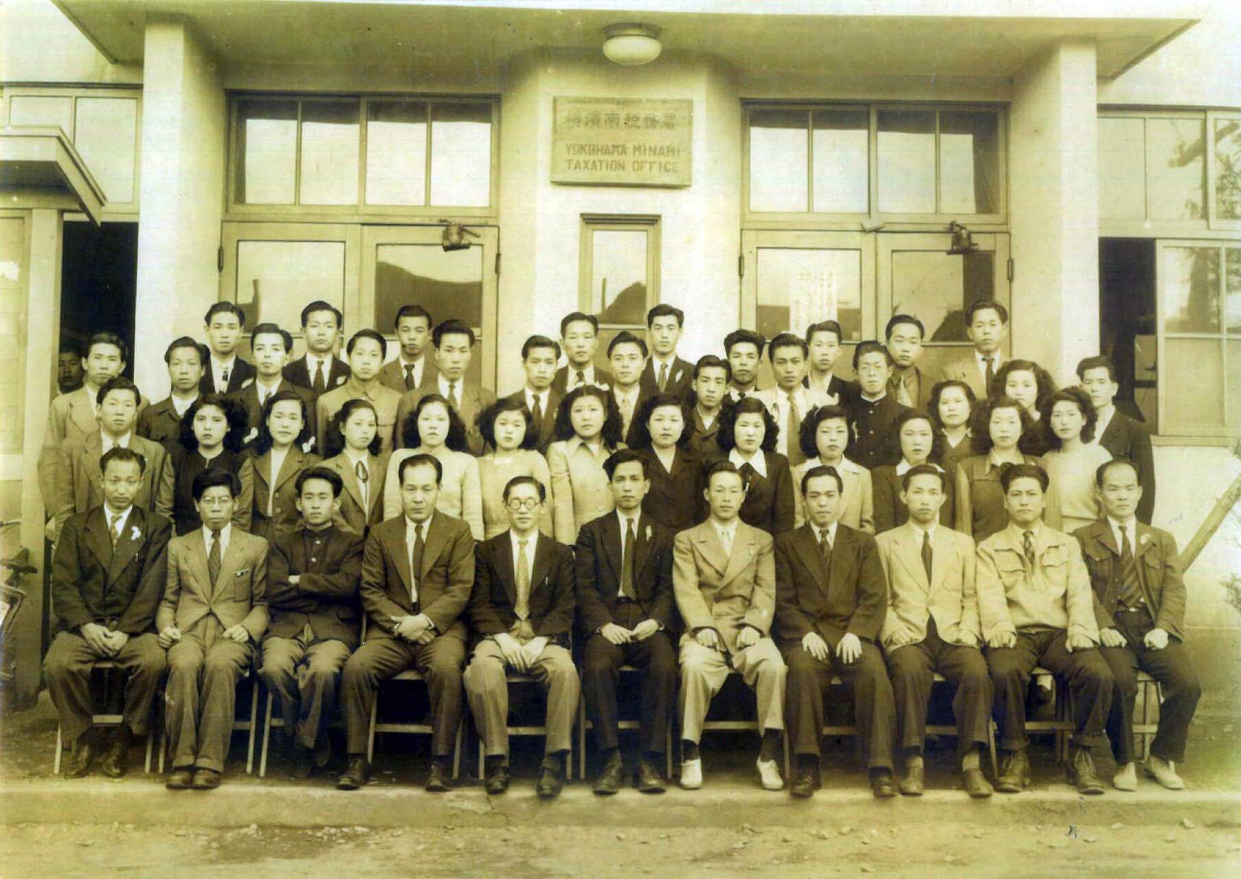 磯子税務署が、横浜市南区真金町に移転し、横浜南税務署と名称変更された際の集合写真です。