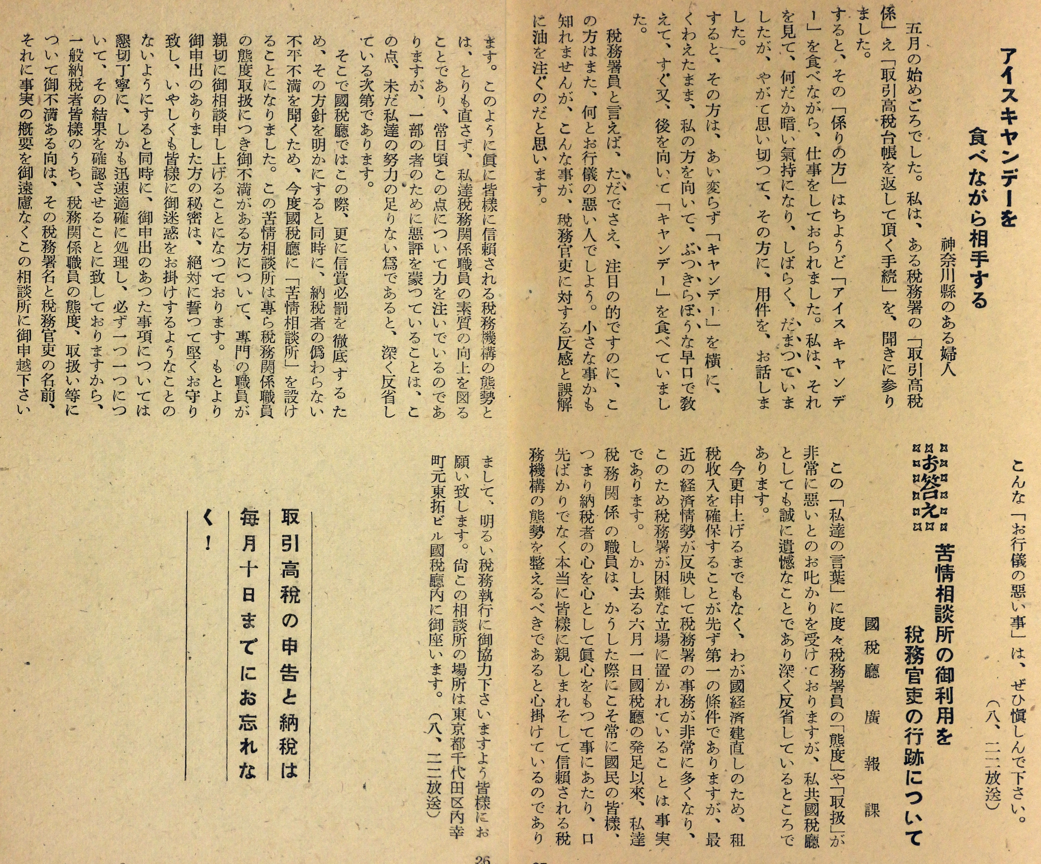 NHKのラジオ番組「私たちの言葉」に寄せられた投書から、税に関する不平や不満等を選び、国税庁の回答を付けて刊行したものです。