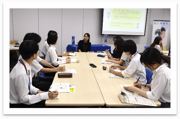 1day仕事体験では、国税専門官の「業務説明」、「模擬調査」及び「座談会(対面のみ)」を実施しました。対面形式での開催の様子をご紹介します。
