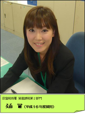 私は今、相続税、贈与税及び所得税のうち土地や株式などを売却した時の譲渡所得の調査を行っており、子育ての真最中ですが、仕事にやりがいと達成感を感じることができ、充実したとても幸せな日々を送っています。