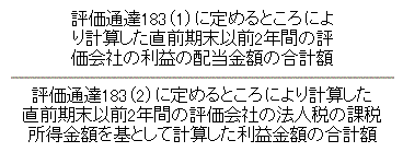 評価通達183(2)に定めるところにより計算した1株当たりの利益金額と大震災の発生直後の状況に基づいて合理的に見積もった大震災の発生日を含む事業年度の所得金額を基として計算した利益金額の見積額(以下「見積利益金額」という。)を直前期末における発行済株式数(1株当たりの資本金の額が50円以外の金額である場合には、同日における資本金額を50円で除して計算した数によるものとする。)で除して計算した金額との合計額の2分の1に相当する金額