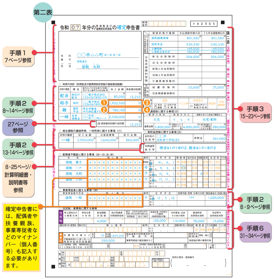 - ○ この手引きの各項目における記載例は、原則としてこの「申告書の記載例」を使用しています。