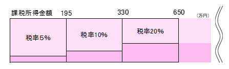 なお、所得税の税率は、所得が多くなるに従って段階的に高くなり、納税者がその支払能力に応じて公平に税を負担するしくみ(超過累進税率)となっています。