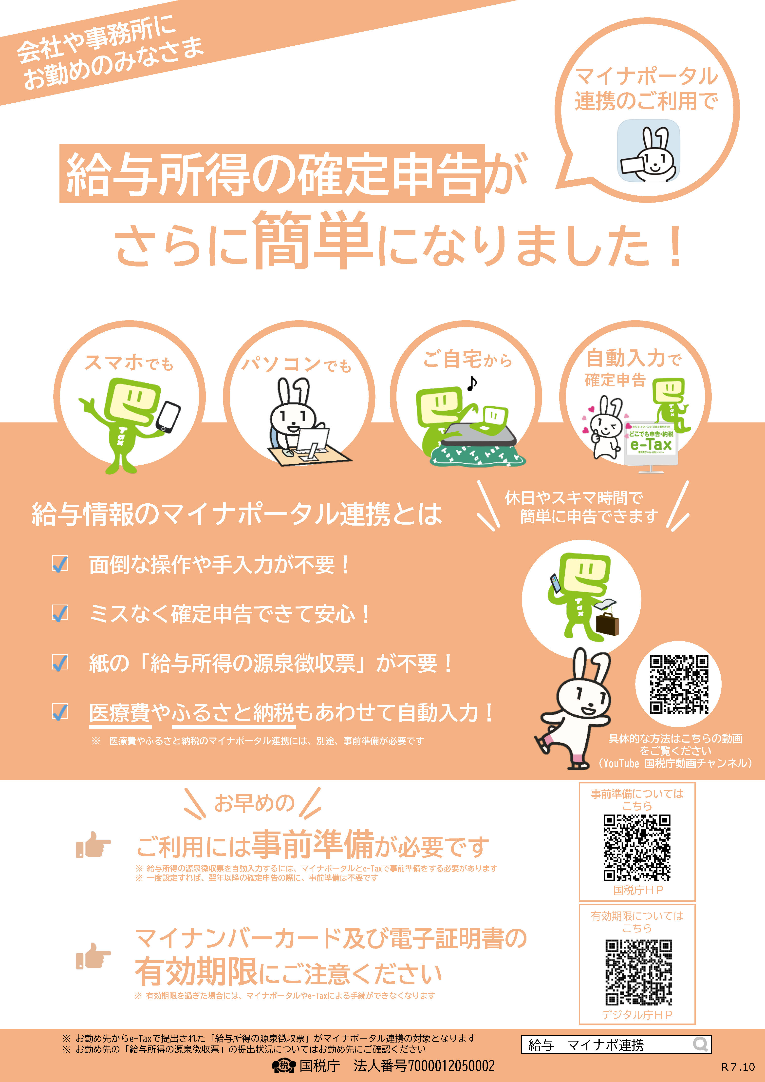 (令和7年10月更新) 給与所得の確定申告がさらに簡単になりました! (A4縦型・スマホ表示用リーフレット)(PDF/582KB) |