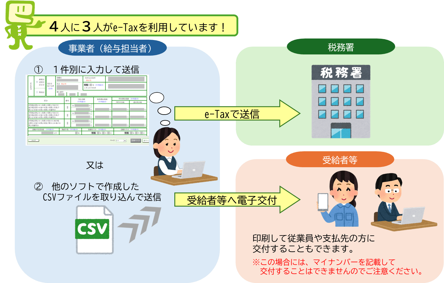法定調書は書面のほか、e-Taxでも作成・提出が可能です。